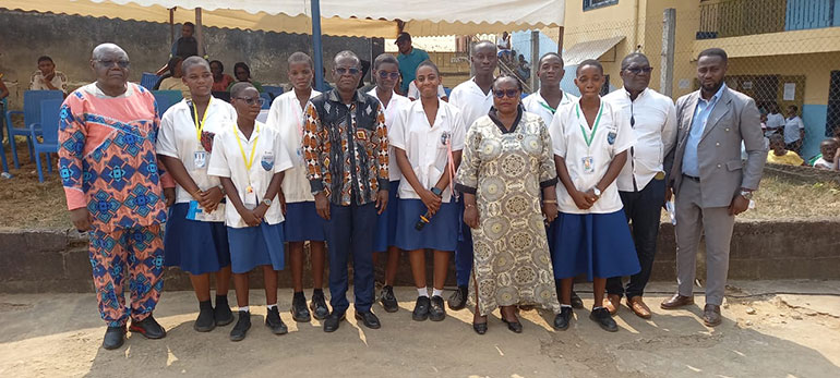 Le Bureau de la Coopérative (2024-2025) pose avec le Principal, les 2 Vice-Principal, le Surveillant général et le Chef des Travaux, le jour de leur installation.
